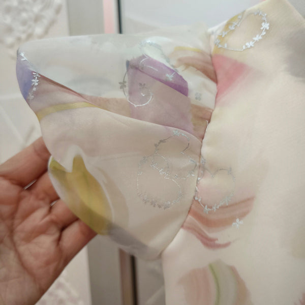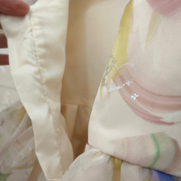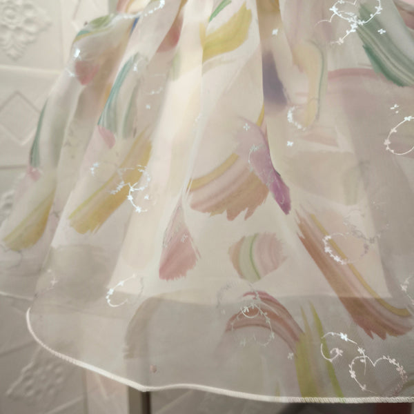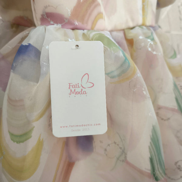 - Material: organza, satén y forro interno de algodón