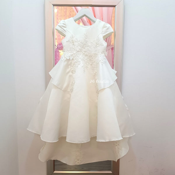 - Detalle de tul bordado y mini perlas cosidas.