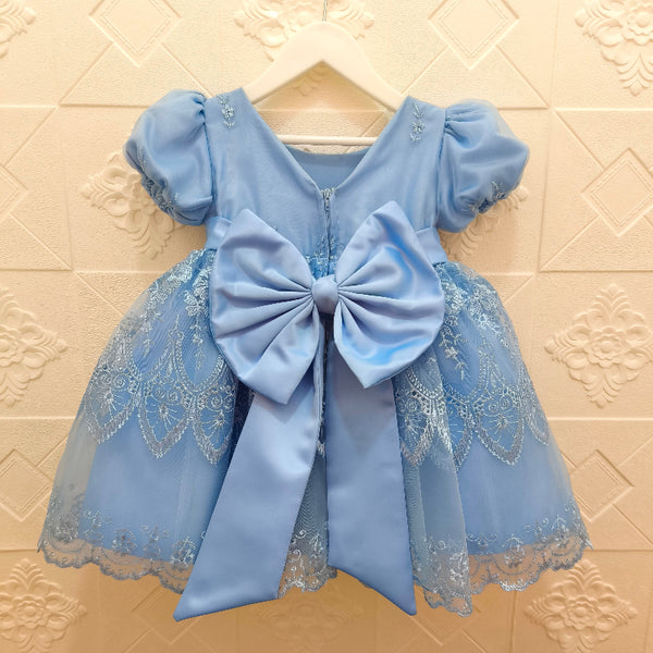 - Detalle: mangas abullonadas, semi escote V y maxi lazo removible