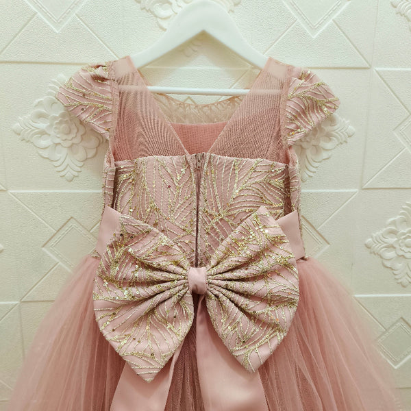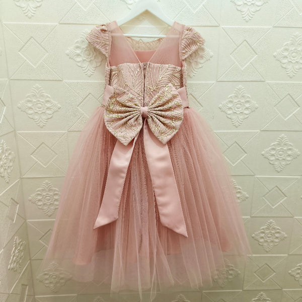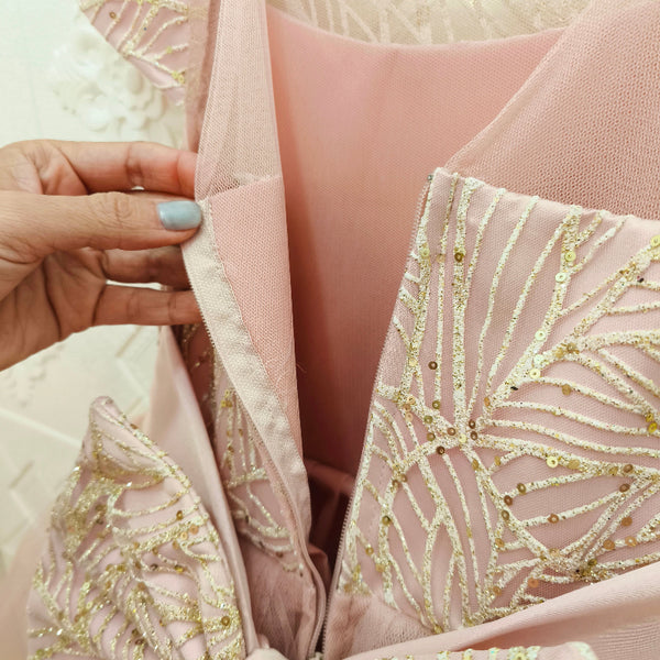 - Detalle: maxi lazo removible, brillos en pecho, espalda y lazo. Semi escote en espalda y transparencia en cuello